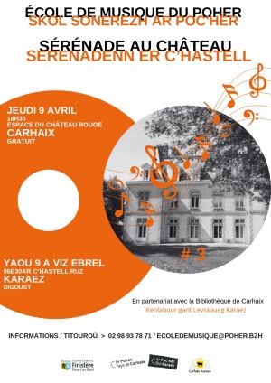 L'école de musique du Poher et la bibliothèque de Carhaix vous ouvrent leurs portes jeudi 9 avril prochain à 18h30 et vous proposent d'assister à la troisième édition de " Sérénade au Château "